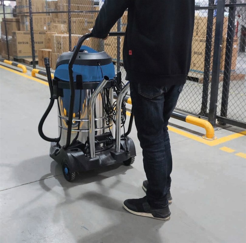 L’aspirateur eau et poussière 60L 230V 2400W avec cuve inox basculante et deux moteurs SCHNEIDER, est équipé d’une cuve métallique en inox.