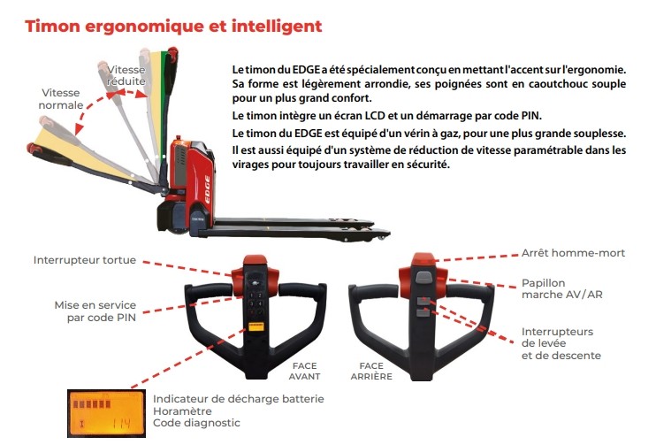 Conçu pour réduire les troubles musculo-squelettiques (TMS), il se distingue par sa grande maniabilité, son format compact plus court qu’un transpalette manuel standard et son poids réduit de seulement 123 kg batterie incluse. Son utilisation est intuitive et sécurisée, y compris dans les espaces restreints ou lors du déchargement de camions.
